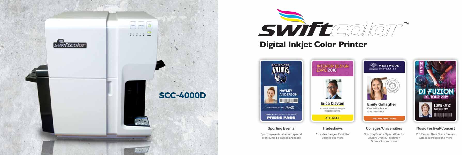 Again, who is SwiftColor, sound familiar? SwiftPro and Swiftcolor are both part of the Kanematsu Group. SwiftColor offers a diverse line of on-demand digital inkjet oversized credential cards and label printers.